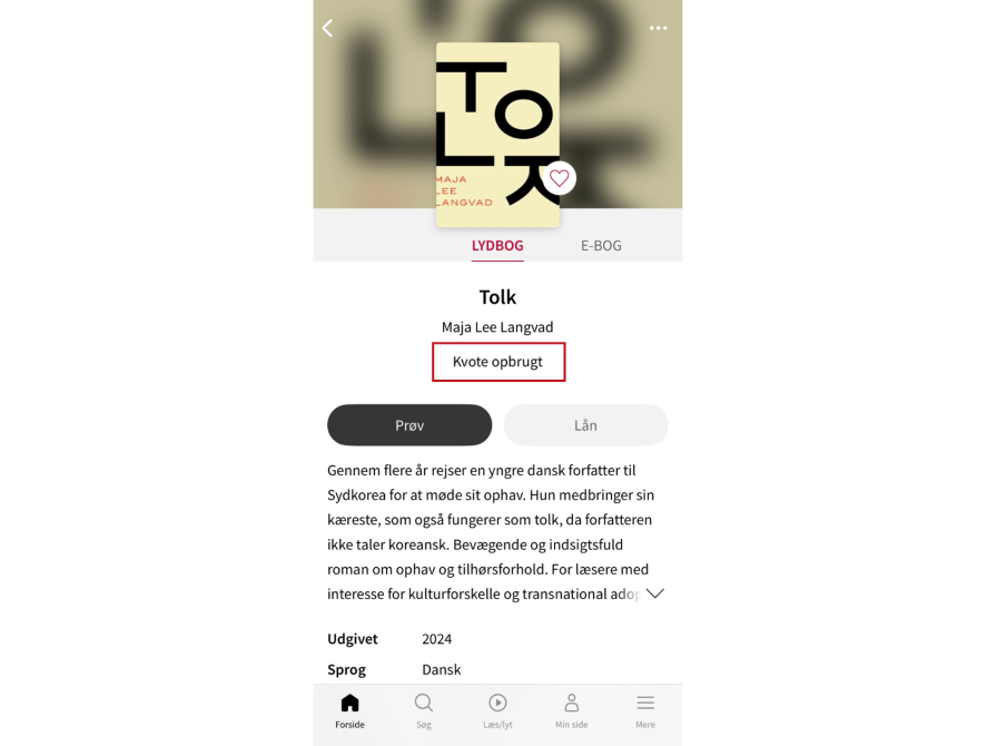 Hvis du ser fejlbeskeden "Kvote opbrugt", når du forsøger at låne en bog på eReolen, kan det skyldes, at du allerede har lånt det antal e-bøger eller lydbøger, som din kvote tillader. Hver bruger på eReolen kan kun have et begrænset antal samtidige lån af henholdsvis e-bøger og lydbøger. Denne kvote afgøres af biblioteket i din kommune. Så snart ét af dine andre lån udløber, kan du igen låne materialer.